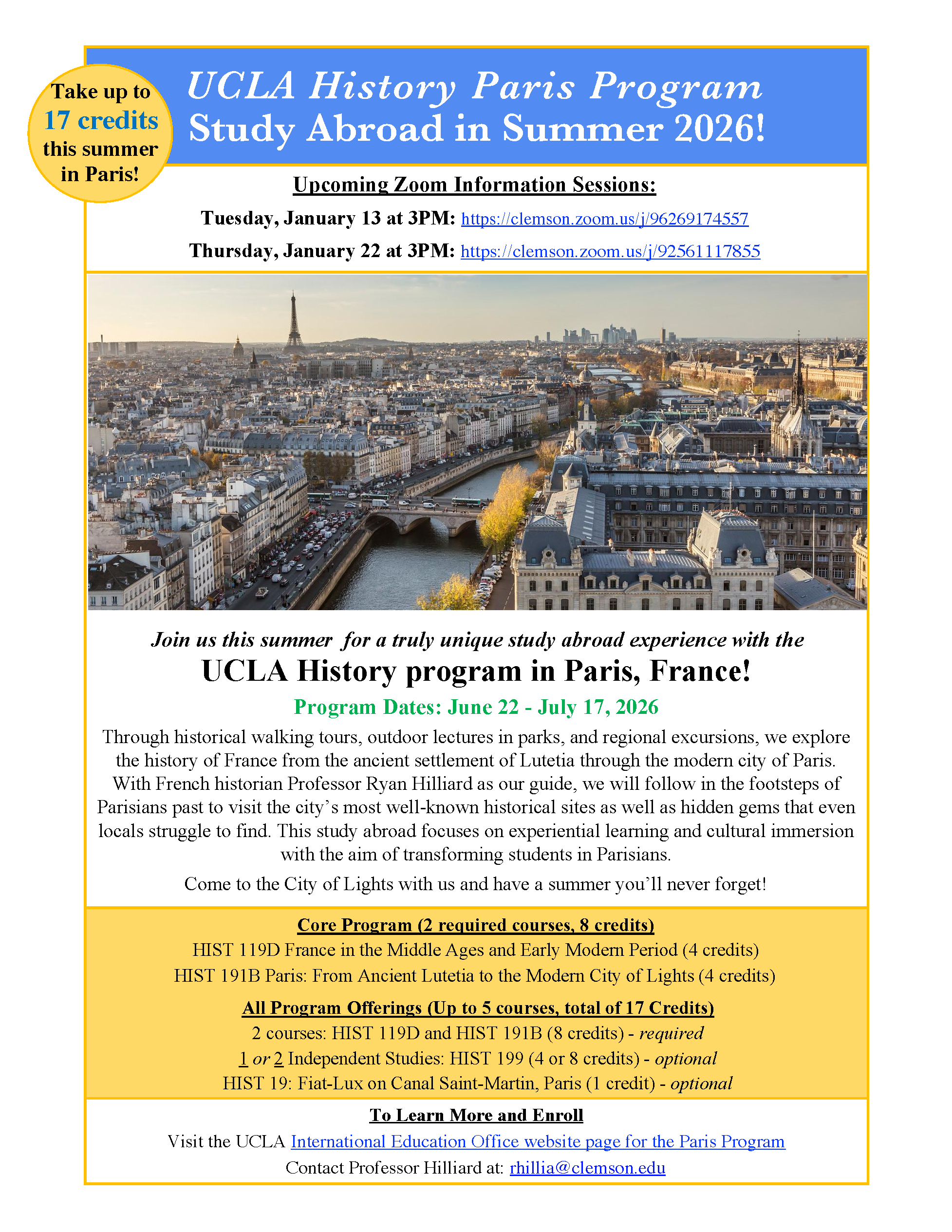 Interested in studying abroad in Paris during the summer? An info session on Paris will be offered Thursday, January 22nd via zoom.