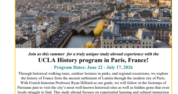 Interested in studying abroad in Paris during the summer? An info session on Paris will be offered Thursday, January 29th via zoom.