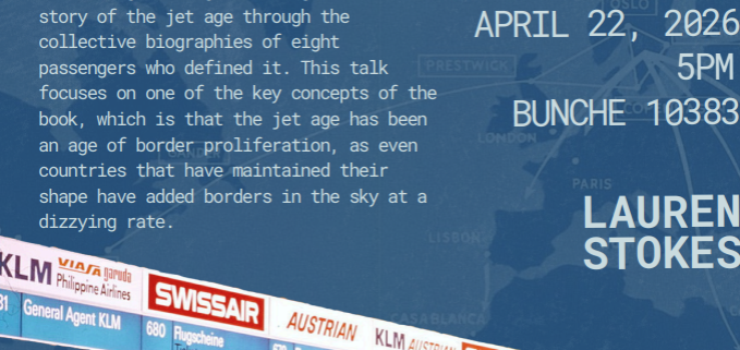 Lauren Stokes, Associate Professor of History at Northwestern University, will be joining us to speak on “The Jet Age in Eight Passengers.”