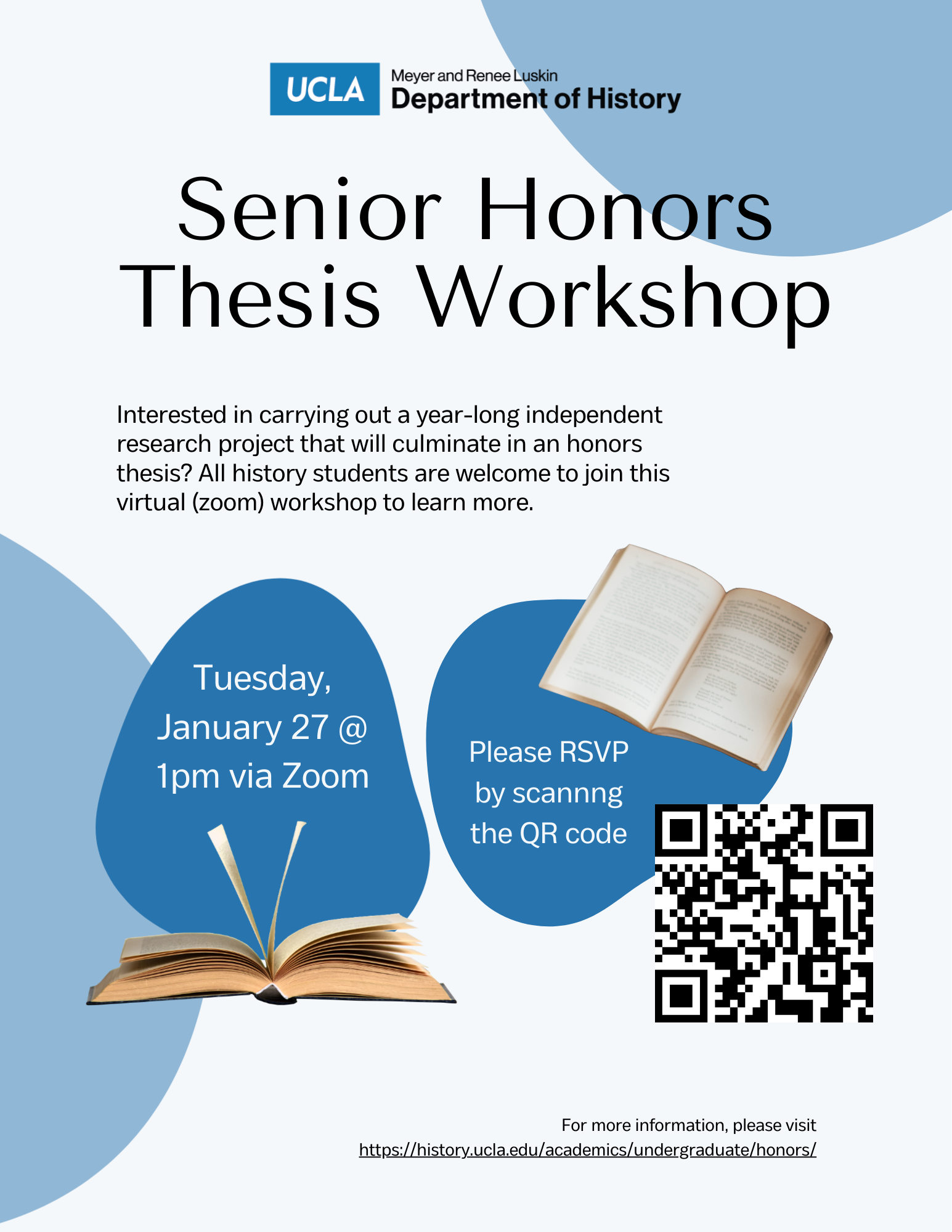 Interested in carrying out a year-long independent research project that will culminate in an honors thesis? Our department will be hosting a workshop for interested students on Tuesday, January 27th at 1pm via Zoom. Please RSVP via https://forms.gle/tEWuck56HYvbWidx7.