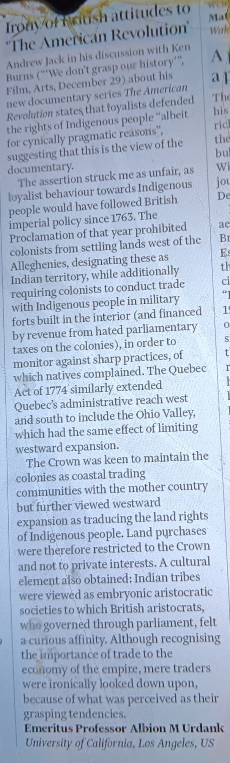 - Albion Urdank published a Letter to the Editor titled “Irony of British attitudes to ‘The American Revolution'” in the Financial Times on January 2, 2026.